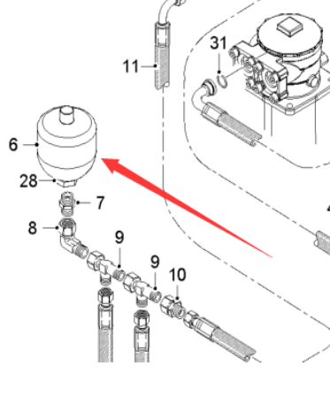 铣刨机铣刨鼓蓄能器,零件号2275415,铣刨鼓液压配件的一种,根据车型不同,配置蓄能器型号不同。